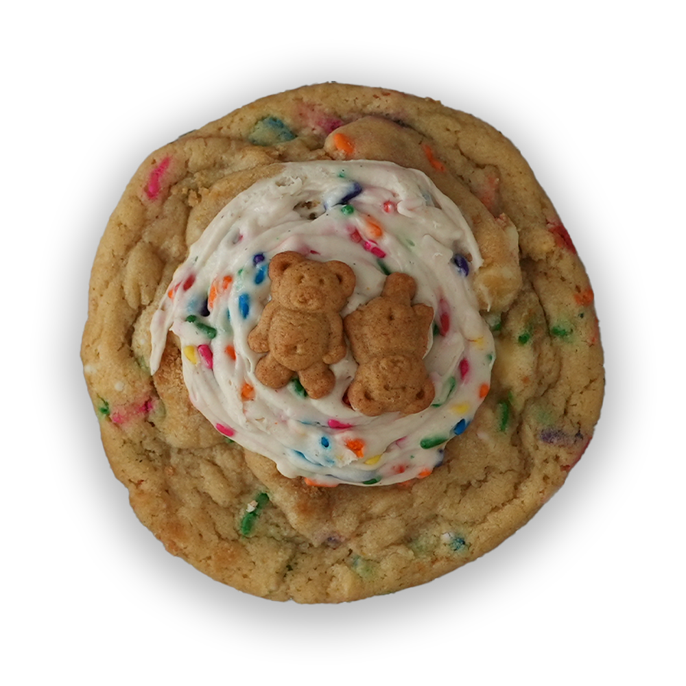 Introducing Dunkaroo - a playful twist on the classic 90's snack! These cookies are bursting with fun and flavor, loaded with teddy grahams and filled with confetti sprinkles & white chocolate chips. Topped with our homemade frosting that'll take you back to your childhood. Get ready to dunk and enjoy a quirky treat that's sure to put a smile on your face (and in your belly)!